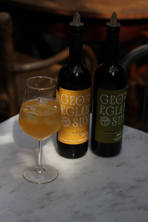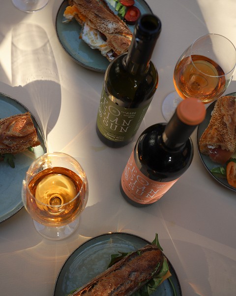Photographed Georgian Sun wines during live events and activations, focusing on product presence in real environments (people, light, tablescapes, brand mood).